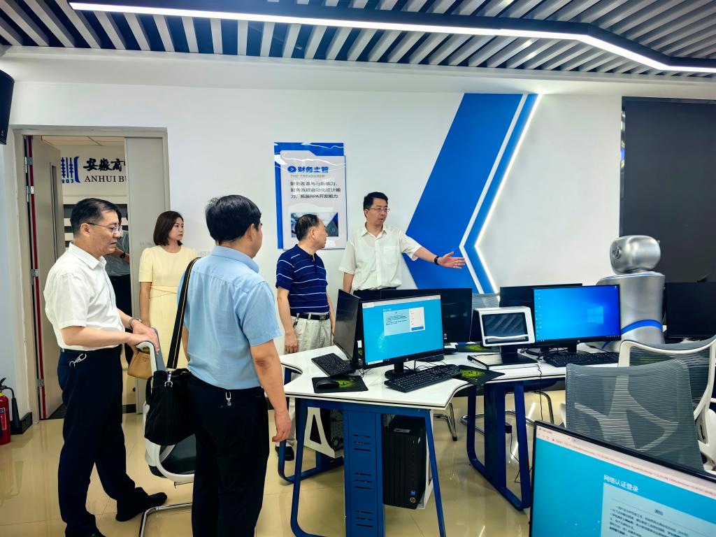 袁爱清一行来到安徽商贸职业技术学院,受到安徽商贸职业技术学院党委委员、副校长郑承志热情接待,双方举行座谈。袁爱清介绍了学校的总体情况、办学特色及此行目的,希望双方进一步加强交流与合作,共同推动校际联动高质量发展。与会人员围绕双高建设、教育教学、师资队伍、技能大赛、校企合作等进行了交流分享。会后,袁爱清一行在郑承志的陪同下参观了实训室和现代化教室。