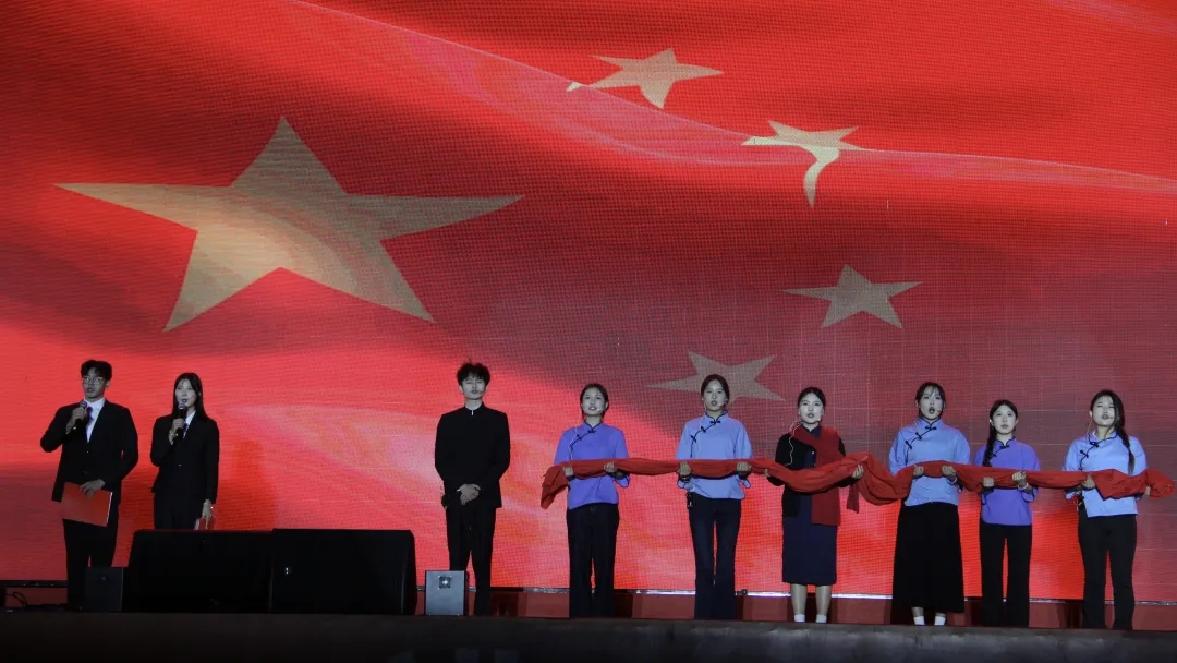 为纪念中国人民抗日战争暨世界反法西斯战争胜利80周年,第一篇章“铭记岁月·山河正好”聚焦红色基因与家国情怀,引导新生铭记历史、砥砺前行。朗诵《启航》以红船精神为脉络,将先辈的星火与青年的使命紧密相连;歌曲《在太行山上》以激昂旋律与深情演唱,将烽火岁月的壮志与赤诚深深烙印在听众心中;话剧《红旗飘》以一面红旗为信仰纽带,生动演绎了先辈的初心与坚守;歌伴舞《万疆》凭借歌与舞的完美融合,将烽火岁月的铮铮傲骨与青春年华的赤子之心展现出来。