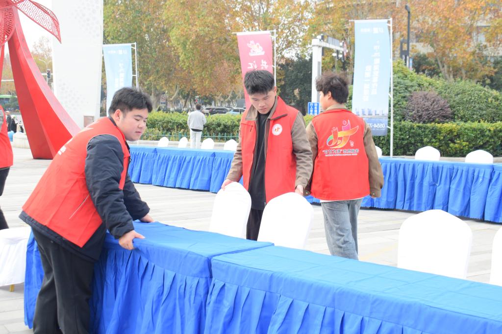 活动前期,志愿者们提前抵达会场,迅速投入会场布置工作。他们分工协作、默契配合,细致完成桌椅摆放、物料整理、标识张贴等筹备任务,用严谨态度筑牢活动保障根基。从会场筹备到现场服务,学校志愿者始终以饱满热情、专业态度投入各项工作,不仅保障了活动各环节高效有序推进,更以实际行动践行了新时代青年的责任担当,彰显了淮职学子崇德向善、乐于奉献的精神风貌。