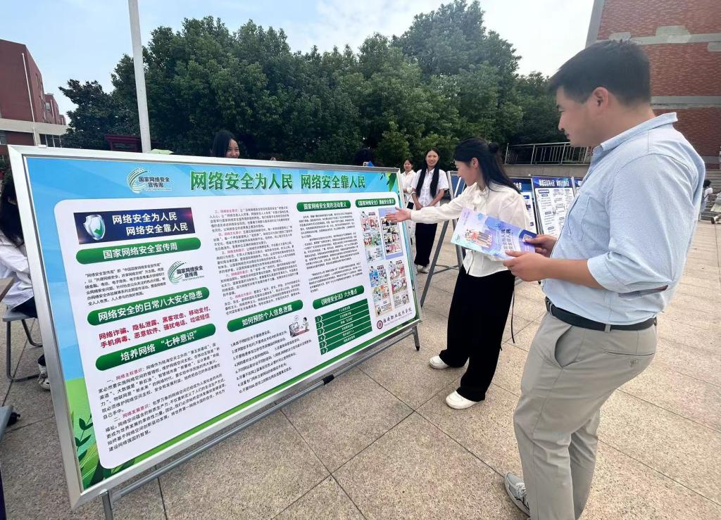 我校学生作为网民代表与其他高校同学一起共同宣读了安全文明上网倡议书。同学们现场发放宣传单、宣传书签等,对活动现场人员进行了网络安全宣传,共同营造共筑网络安全防线的浓厚氛围。