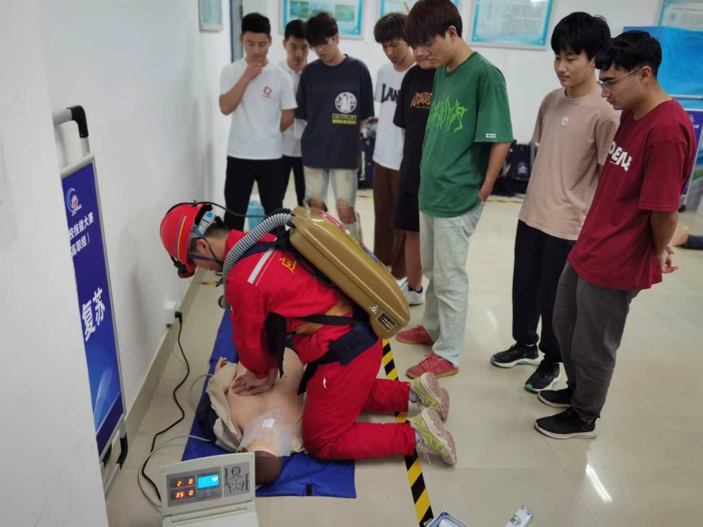 技能展示由拟参加2023年全国职业院校技能大赛生产事故应急救援技术赛项的同学演示,他们分别演示了闻警出动、救援准备、心肺复苏、有害气体检测,高超的演示技术水平引来参观学生阵阵喝彩,演示结束后,部分同学对一些展示项目产生极大兴趣,忍不住动手训练。