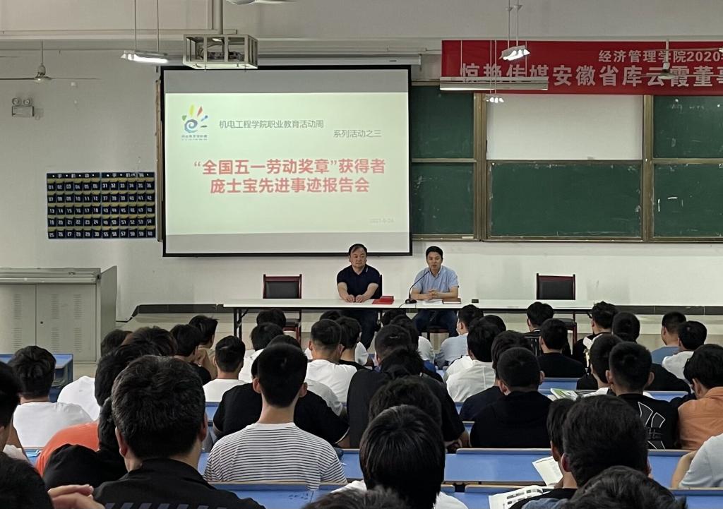 为大力弘扬“工匠精神”,增强学生的职业信心,提升职业素养,2021年5月24日,机电工程学院在1315教室举行了“全国五一劳动奖章”获得者庞士宝先进事迹报告会。机电工程学院全体师生参加了此次报告会。