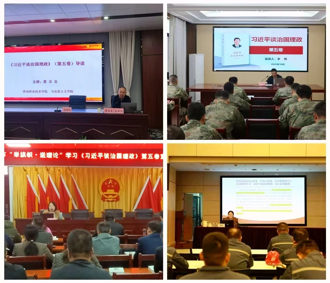 9月下旬至10月中旬,市委宣传部会同市委讲师团组建淮南市“举旗帜·送理论”学习《习近平谈治国理政》第五卷市级宣讲团赴基层一线开展宣讲。