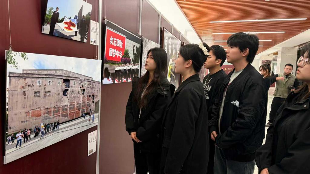 10月27日,在淮南高新区文化发展中心,学校组织20名学生志愿者走进“国社之镜·世纪光影之人民必胜”艺术展淮南展的现场,在珍贵影像中回望峥嵘岁月,在历史回响中汲取奋进力量。