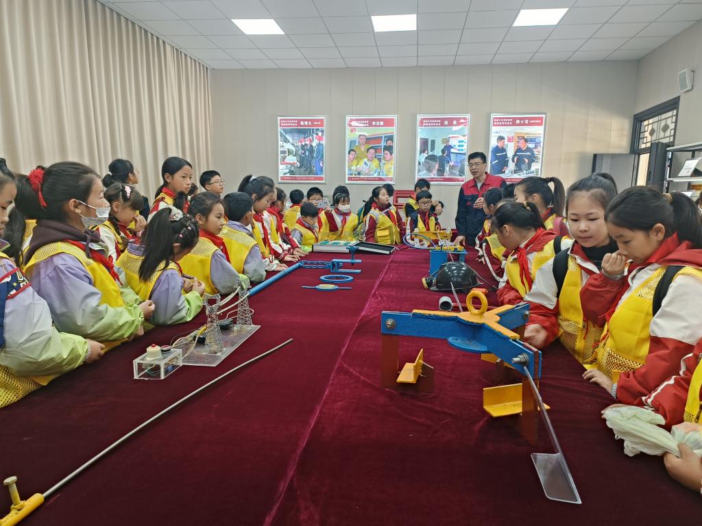淮河能源工匠学院以优质的科普服务与丰富的实训资源,成为活动核心亮点。在淮河能源工匠学院实训场地,同学们在学校专业教师与实训导师的带领下,开启了一场“趣味+专业”的科普探索之旅。在矿山机械实训区,同学们近距离观察掘进机、采煤机等模拟设备,认真聆听导师讲解设备工作原理与矿山开采技术的发展历程;在安全防护实训区,大家亲手操作模拟安全防护系统,学习煤矿安全生产规范与应急处置技巧,在实操体验中深化对科学知识的理解;在工匠精神展示区,通过导师对行业技能大师事迹的讲解,同学们深刻感悟“精益求精、追求卓越”的工匠精神内涵,树立了对职业技能的正确认知。