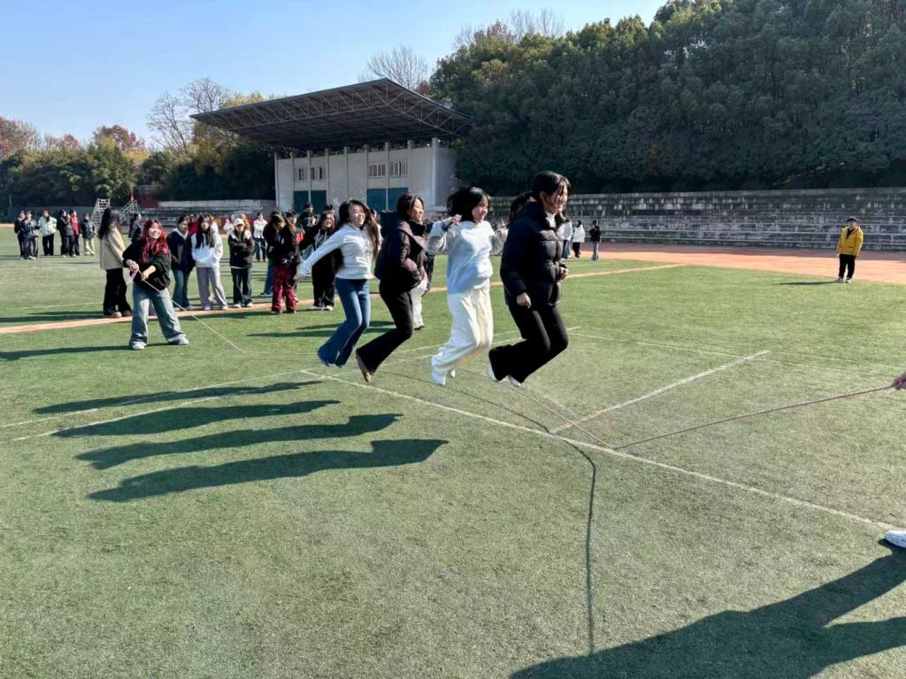 系列活动自11月27日拉开帷幕。“趣味躲避球”在篮球场上演速度与智慧的较量。同学们灵活闪躲、默契传球,五彩的躲避球如流星穿梭,欢声笑语与加油呐喊交织,充分展现了学子们的敏捷与团队协作精神。12月3日至4日,“青春跃动 绳系健康”跳大绳活动接力登场。近两百名同学在运动场自由组队,摇绳者稳健有力,跳绳者灵动跃动。大家跟随长绳摆动的节奏一同跳跃,在齐声计数与互相鼓励中,驱散寒意,加深情谊,跃动的身影成为校园里生机勃勃的风景。12月12日,“想唱就唱,好歌分享”活动则以别样温情延续精彩。同学们围坐于运动场草坪,以蓝天为幕,以草地为台。从经典老歌到流行热曲,从深情独唱到默契合唱,真挚的歌声在清风与阳光下流淌,营造出自由、轻松、愉悦的交流氛围,为学业生活注入了舒缓与暖意。