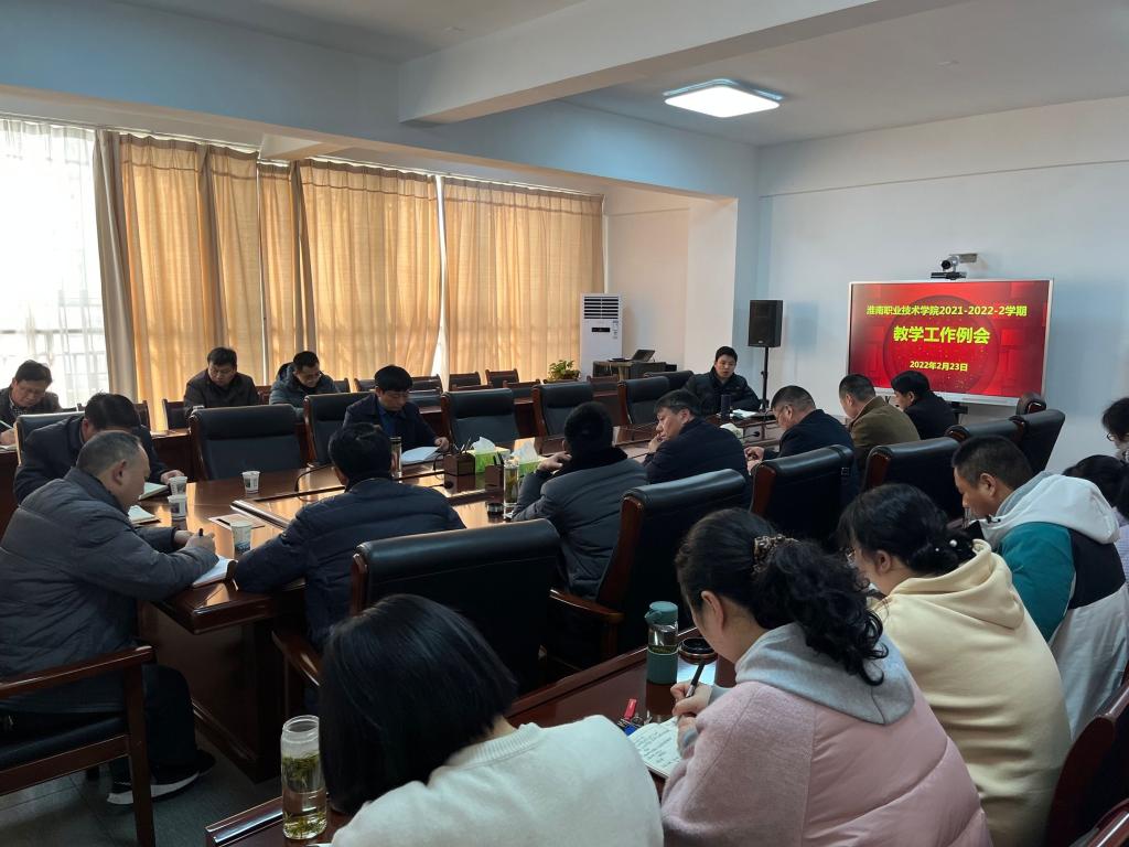 2月23日下午,2021-2022-2学期第一次教学工作例会在行政楼405会议室召开,副校长凌总成出席并作总结发言,教务处负责人主持会议,各二级学院院长、教学副院长、教学秘书,双高办和网络信息中心相关同志及教务处全体人员参加会议。