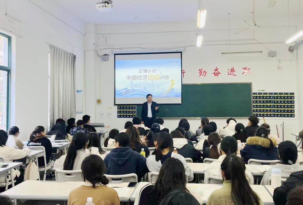 本次授课的主题是《正确认识中国经济热点问题》,主要围绕“应对外部冲击的能力底气何来”“为何要促进民营经济发展壮大”和“做强国内大循环如何实现”三个方面内容展开。课堂上,童喜围绕当前经济发展形势,结合翔实数据与生动案例,对同学们关心的宏观政策、市场活力、科技创新、高质量发展等热点进行了深入浅出的解读。