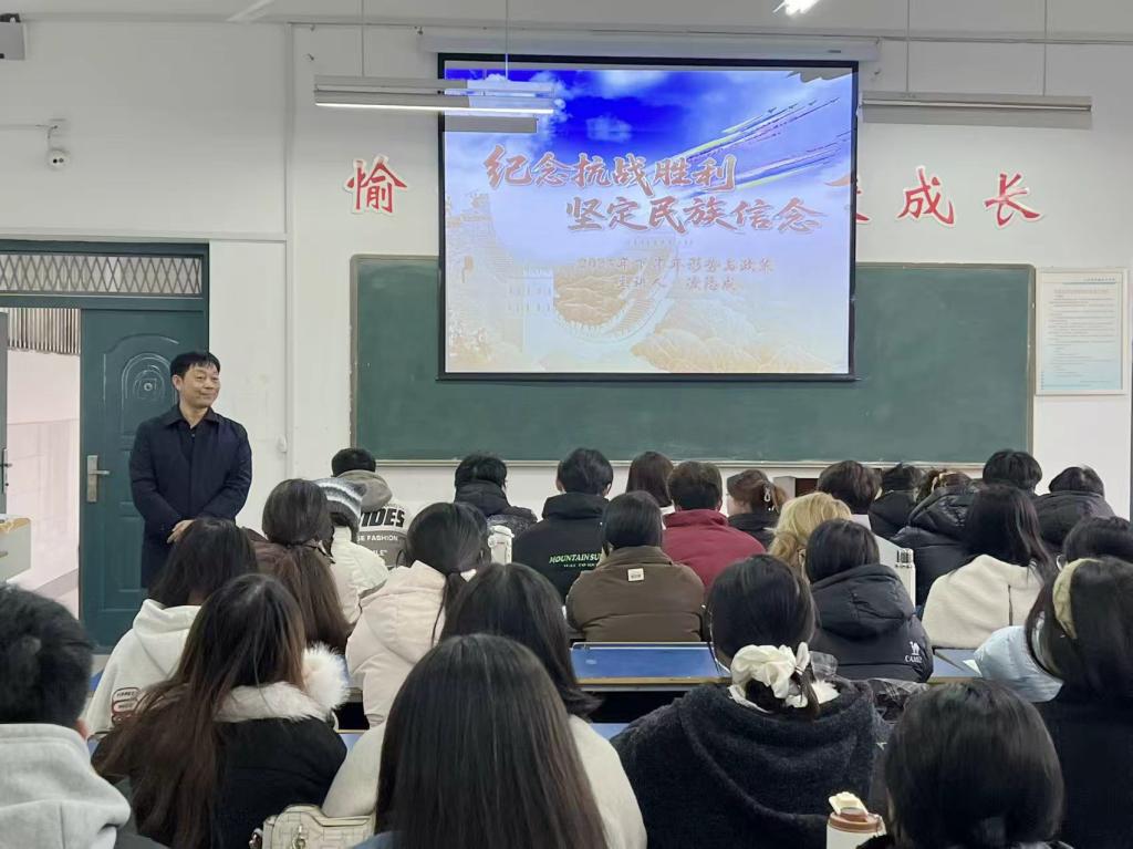 为纪念中国人民抗日战争暨世界反法西斯战争胜利80周年,引导青年学子深刻铭记历史、弘扬伟大抗战精神,11月17日下午,学校副校长凌总成以“纪念抗战胜利,坚定民族信念”为题,为工程管理学院2025级视觉传达设计专业学生讲授了一堂生动而深刻的形势与政策课。