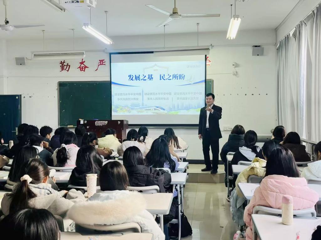 为使大学生深刻认识平安中国建设在中国特色社会主义事业发展全局中的重要作用,深刻理解建设平安中国所彰显的政党奥秘、制度奥秘、发展奥秘、治理奥秘,11月27日下午,副校长朱云辉以“聚焦建设更高水平平安中国”为主题,为2025级护理专业学生讲授形势与政策课。