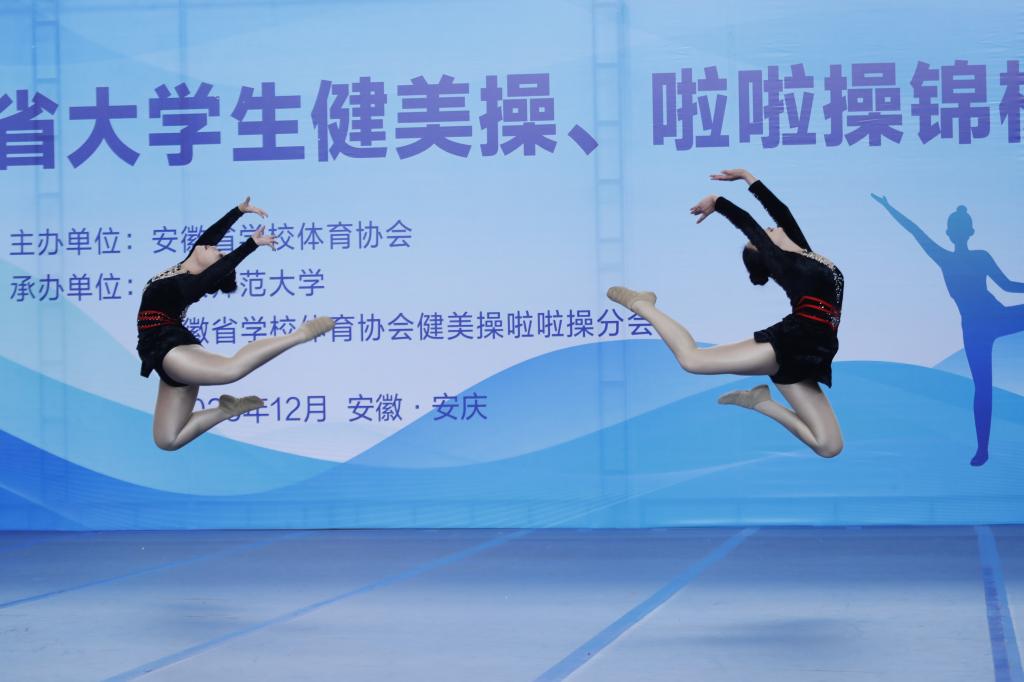 近日,在2025年安徽省大学生健美操、啦啦操锦标赛上,学校人文教育学院学前教育专业张馨冉、游莹梅两位同学组成的双人组合,荣获高职组双人爵士自选动作金牌。