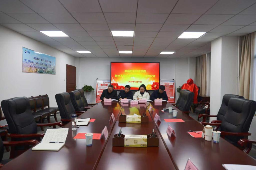 12月17日,“智合本草产业学院”合作协议签约仪式在洞山校区行政楼308会议室举行。淮南职业技术学院、淮南市食品药品检验中心、安徽德昌药业股份有限公司、淮南市药学会共同签署协议,标志着学校在本草产业领域的产教融合与科教融汇步入新阶段。学校副校长凌总成、淮南市食品药品检验中心主任宏伟、安徽德昌药业股份有限公司总经理葛晓丽、淮南市药学会法人代表詹可顺及各方代表共同出席仪式。